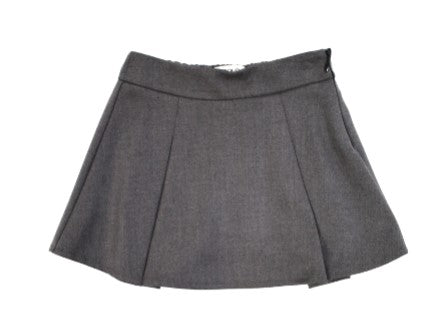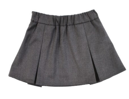 Gonna con bustino in vita, lastcio al retro, chiusura con zip a scomparsa, due pieghe sul davanti e sul retro.