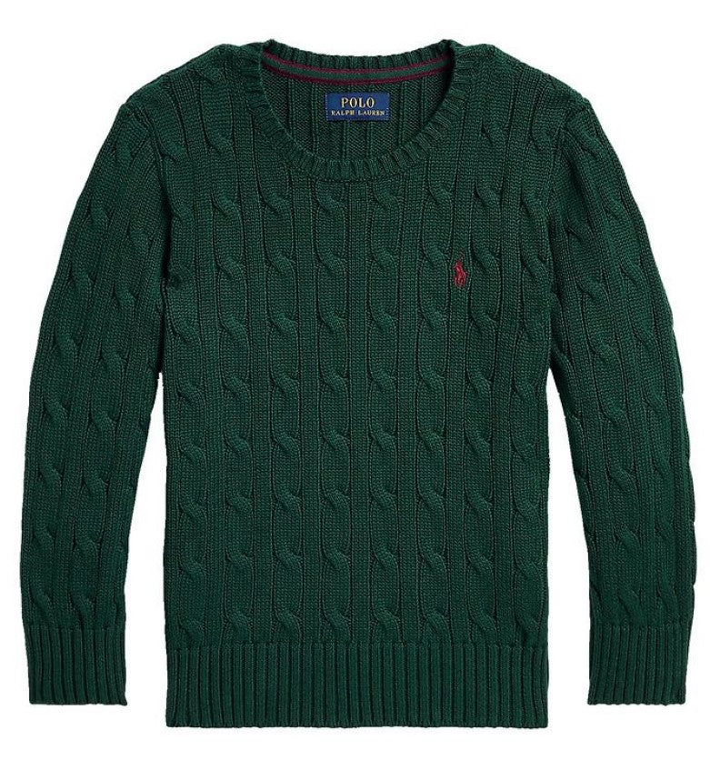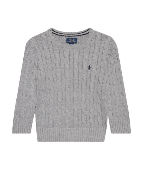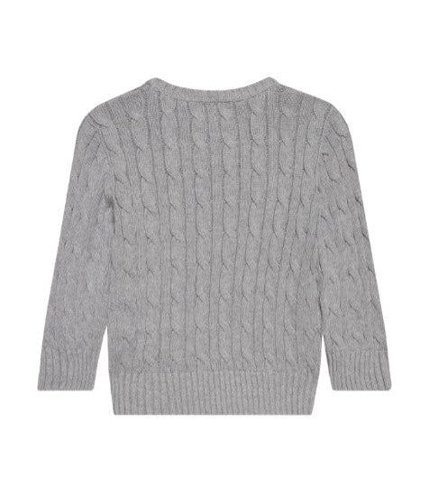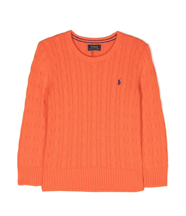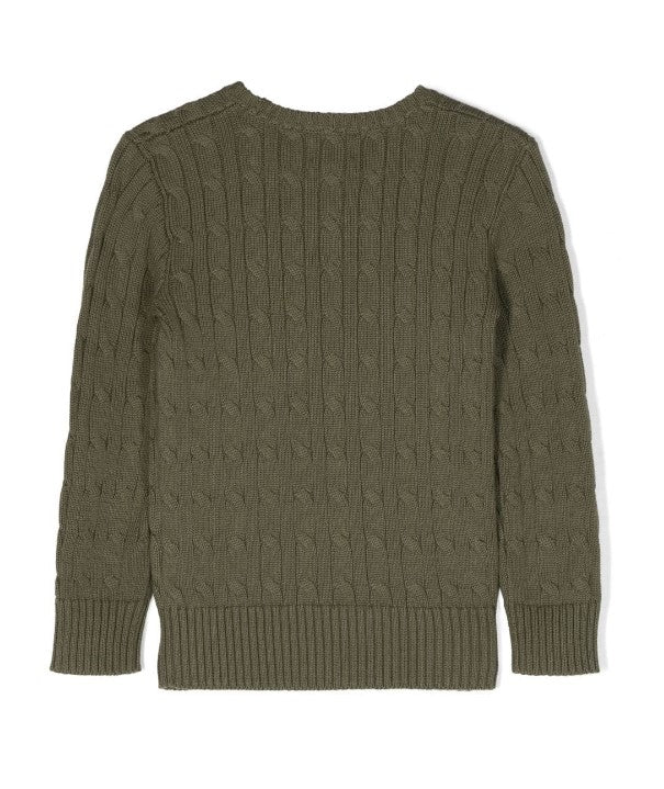 Maglia girocollo a manica lunga in filo di cotone, motivo a treccia, simbolo del brand ricamato sul petto, rifiniture a costa.