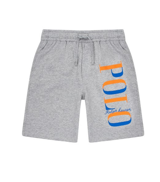 Bermuda in felpa con elastico e coulisse in vita, tasca america, logo stampato.