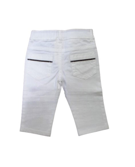 Pantalone modello cinque tasche, chiusura frontale con bottone automatico. Decorazione con dettaglio Web sul retro.