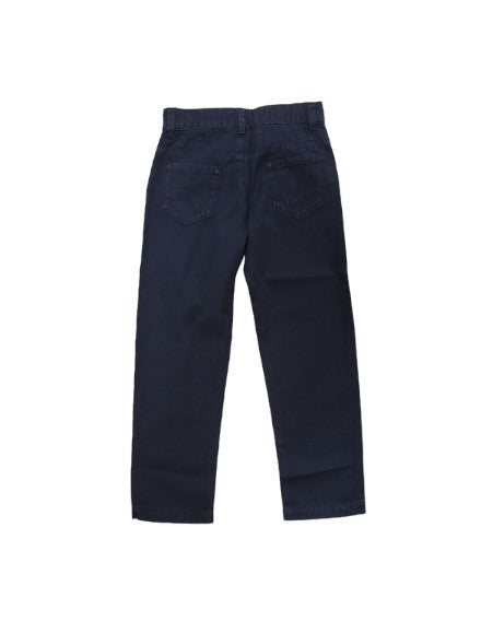 Pantalone bimbo tasca america, chiusura frontale con bottone logato e zip nascosta. Logo applicato sul davanti.