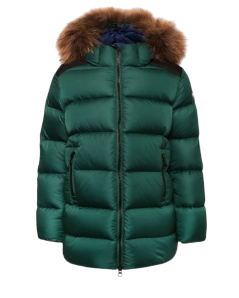 Colmar Giubbino verde lungo con cappuccio e logo 3402F