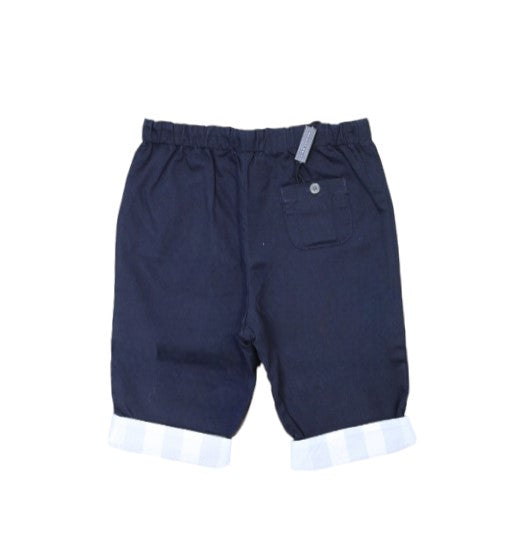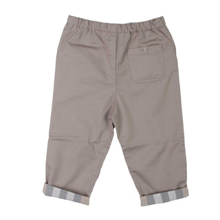 Pantalone in cotone double face, taschino applicato sul davanti, vita elasticizzata.
