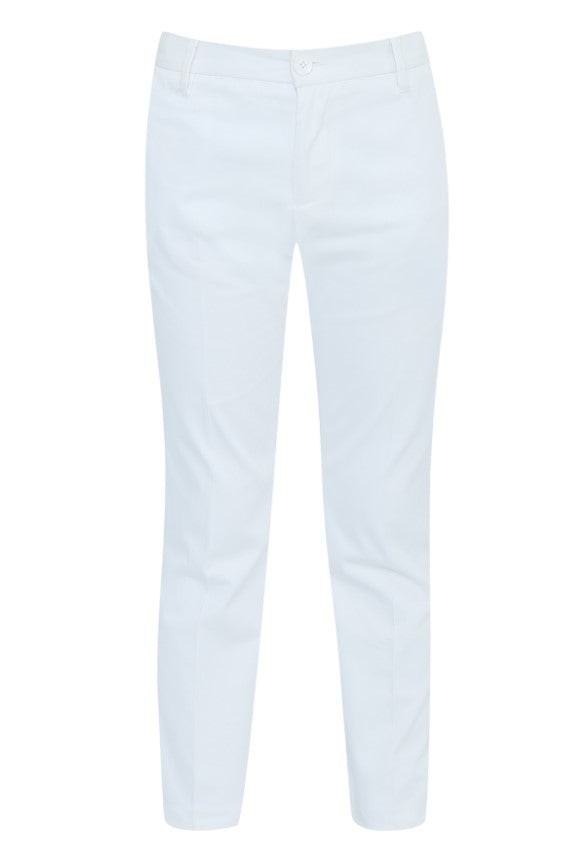 Pantalone tasca america, chiusura frontale con bottone e zip, logo applicato sul taschino posteriore.