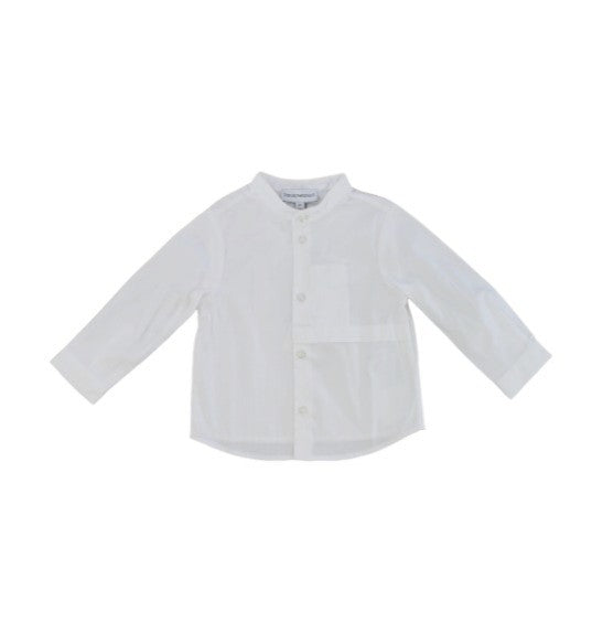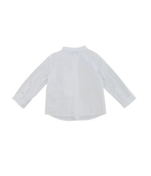 Camicia neonato a maniche lunghe con colletto alla coreana. Simbolo ricamato sul petto. Chiusura frontale con bottoni.
