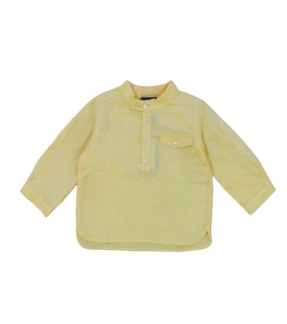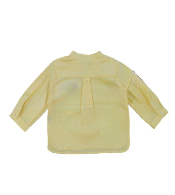 Camicia neonato a maniche lunghe con colletto alla coreana. Chiusura frontale con bottoni.