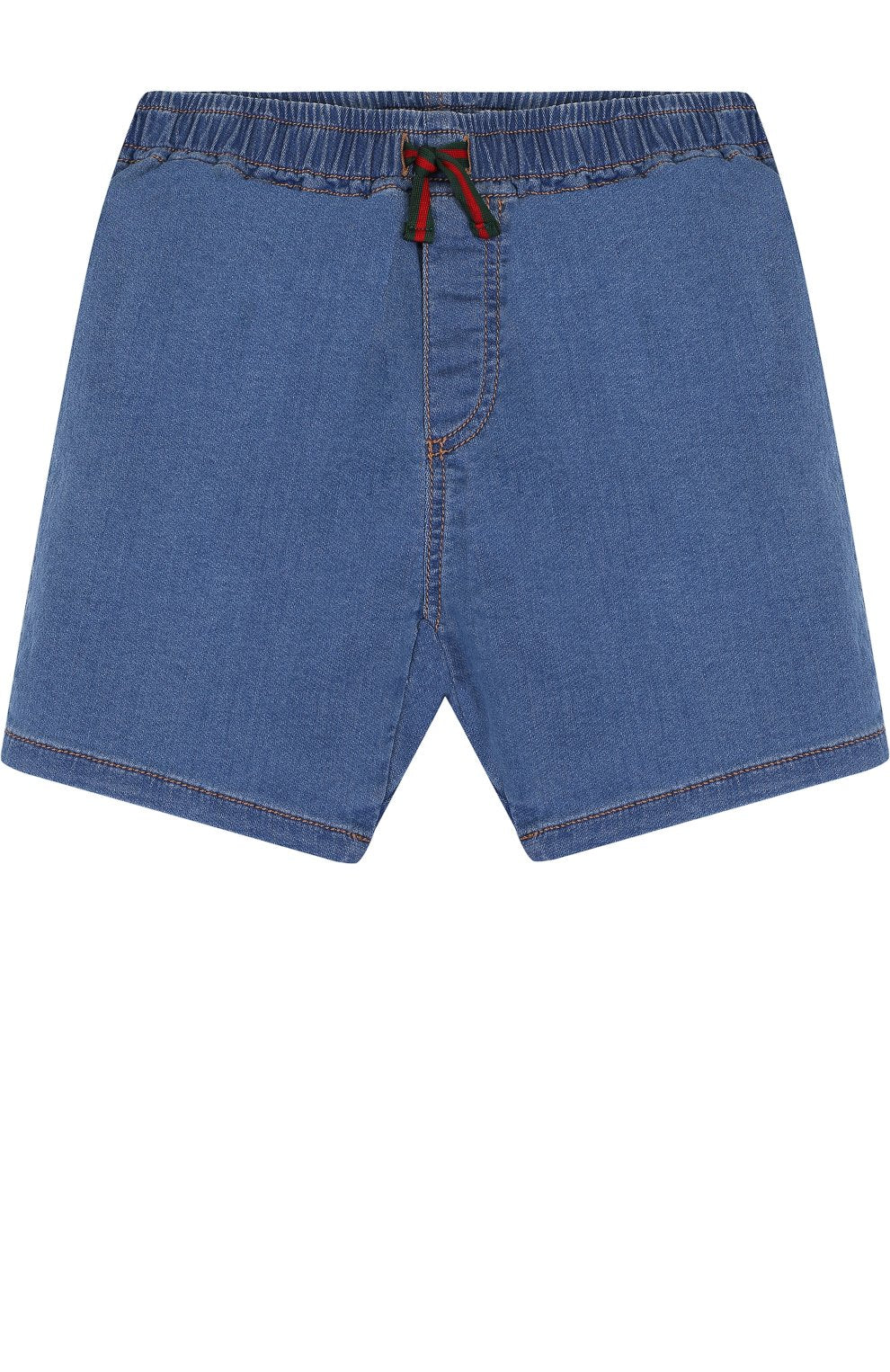 Bermuda in denim con elastico e coulisse in vita nei colori iconici.
