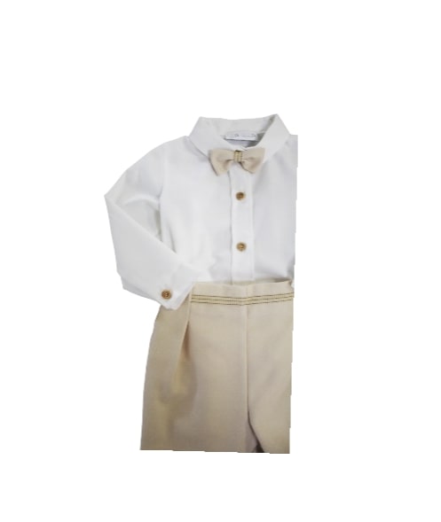 -pantaloni e papillon abbinati con linee ricamate color bordeaux.