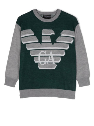 Maglia girocollo con logo in contrasto, rifiniture in costa.