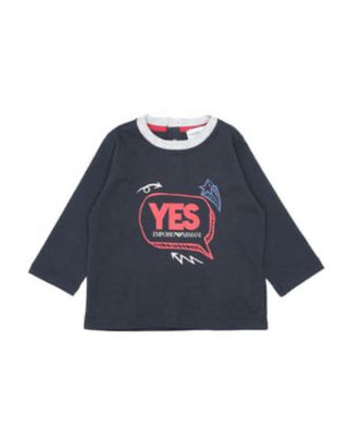 T-shirt girocollo a maniche lunghe con stampa di logo frontale, chiusura con bottoni a pressione sul retro.