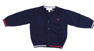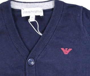 Maglia cardigan, scollo a V, bottoni di chiusura, logo applicato.