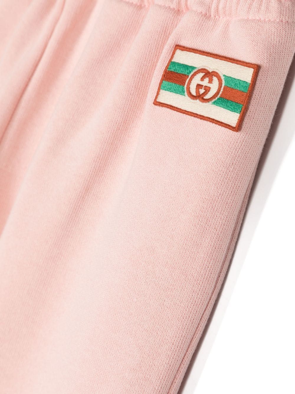Pantalone in felpa di cotone, elastico in vita ed alla caviglia, patch logo applicato sul retro.
