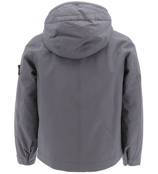 Giubbotto, chiusura con zip frontale, cappuccio fisso, tasche america, pacth logo applicato.