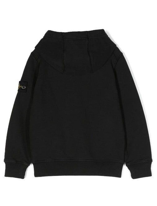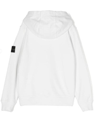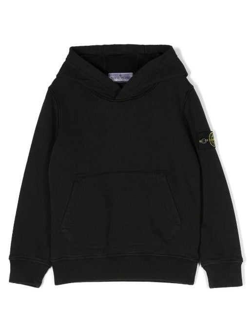 Felpa con cappuccio, tasca a marsupio, logo classico applicato sulla manica.