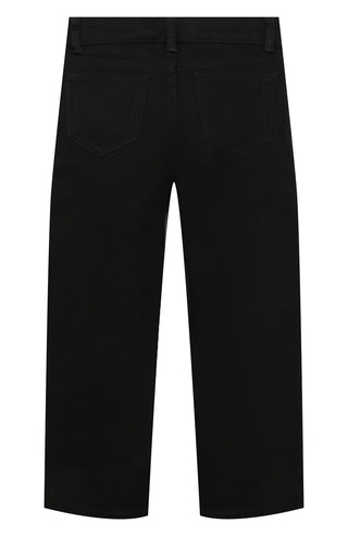 Jeans nero denim, modello cinque tasche. Dritto. Chiusura con bottone e zip. Logo stampato sul davanti.