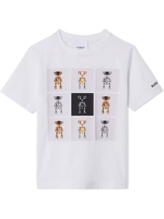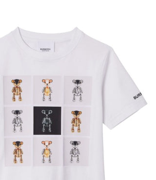 T-shirt girocollo a manica corta, stampa sul davanti, bottoni sulla spalla.
