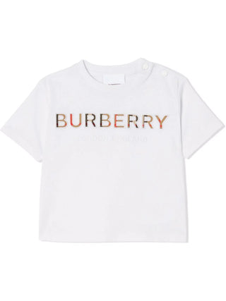 Burberry T-shirt girocollo con logo ricamato 8050426