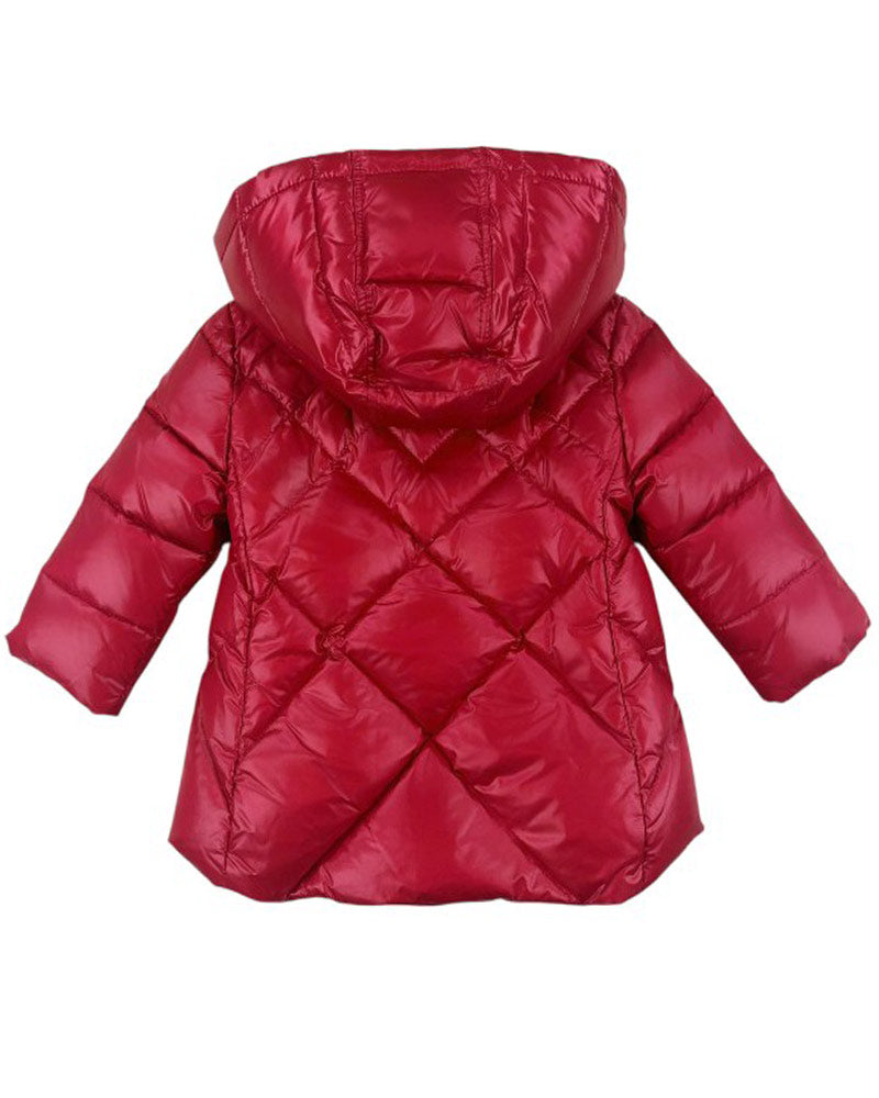 Giubbino imbottito da neonata, realizzato in nylon semilucido. Presenta design trapuntato, cappuccio rimovibile con coulisse regolabile, chiusura frontale con zip e bottoni a pressione, maniche lunghe e due tasche a filetto laterali con zip. È decorato con logo ricamato sulla manica.