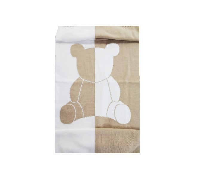 Questa copertina bicolore con un adorabile orsetto sul davanti è perfetta per abbinare e completare la tutina 2 pezzi A&J1240. Con il suo design carino e la sua morbidezza, manterrà il tuo piccolo caldo e confortevole. Un must-have per ogni mamma premurosa.