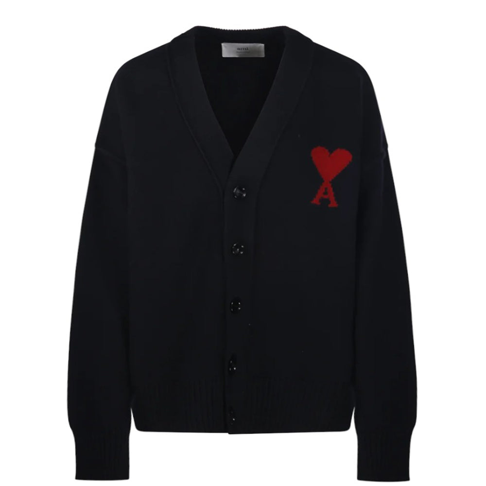 Amis Paris Cardigan nero in lana con Coeur UKC367.018N