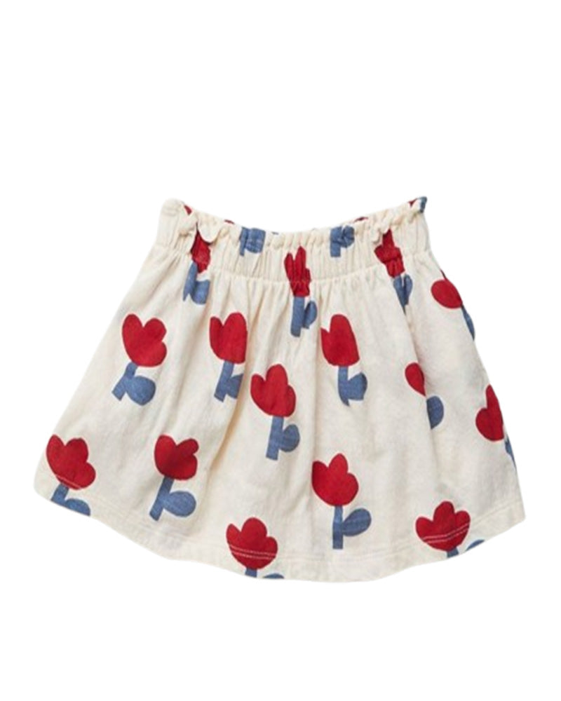 Gonna in cotone, fantasia floreale, vita elasticizzata, taschine laterali.