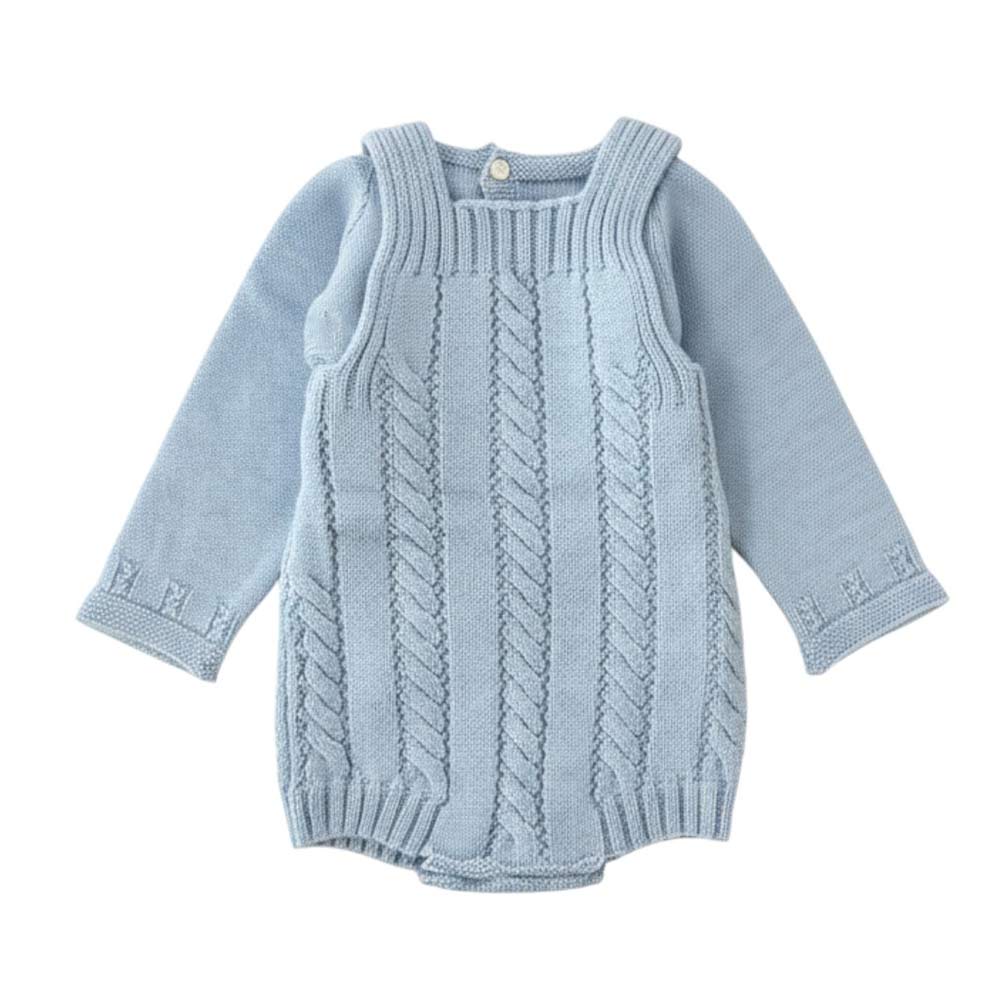 Pagliaccetto a salopette misto lana con motivo treccine sul davanti il sotto con maglia giro collo