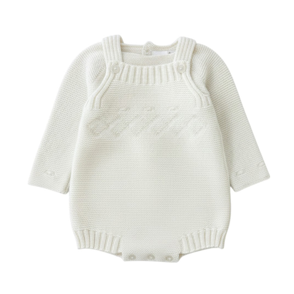 Pagliaccetto a salopette misto lana con motivo treccine sul davanti il sotto con maglia giro collo