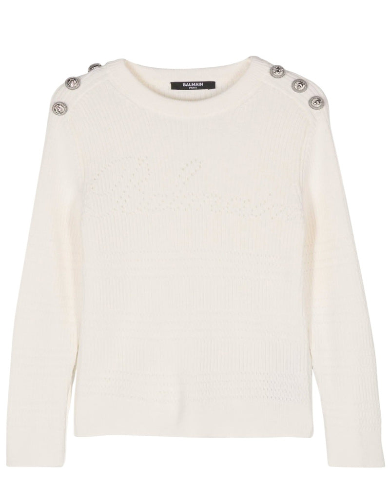 Balmain Maglia avorio in lana da bambina BV9A70-Z2359