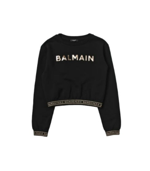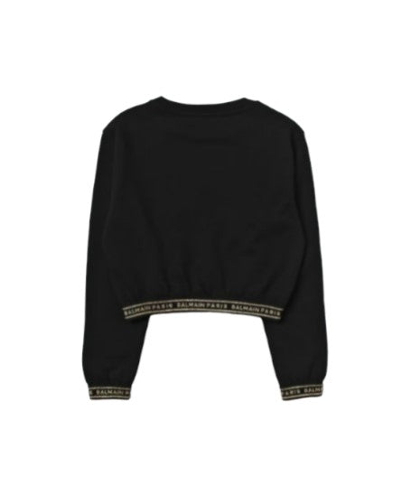 Felpa girocollo cropped con logo stampato sul davanti, elastico logato in vita e ai polsi.