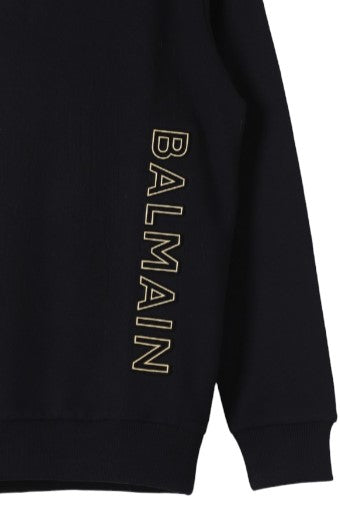 Felpa girocollo, logo in rilievo davanti in contrasto, orlo, polsi e collo in costa.