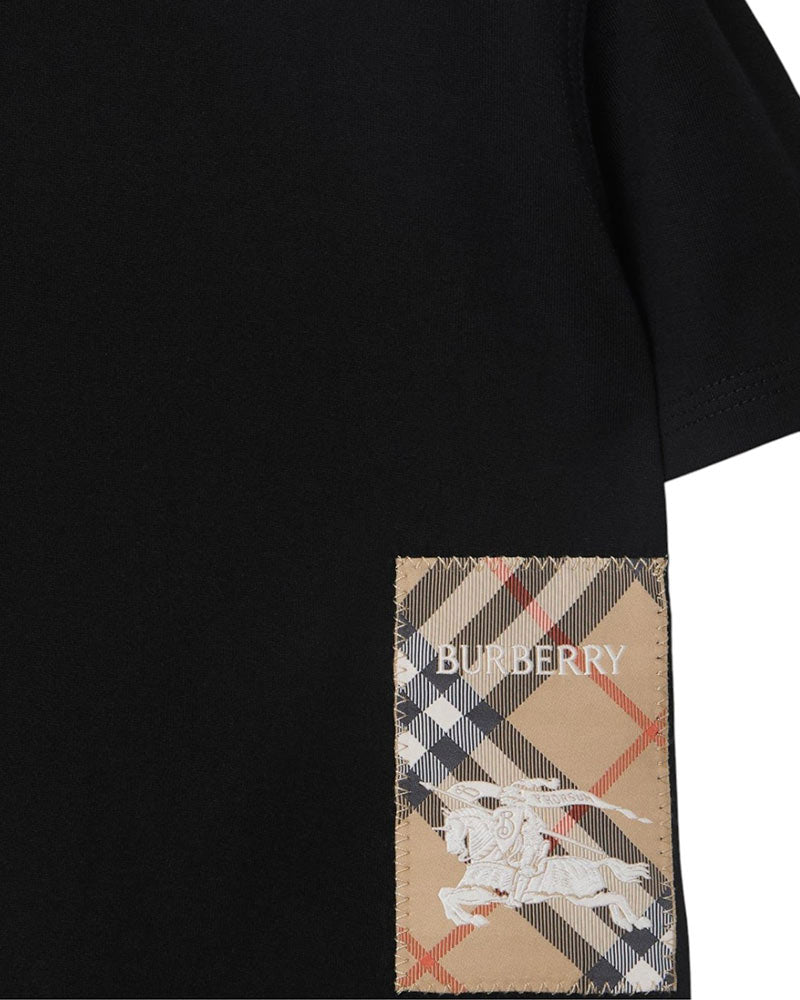 Burberry T-shirt nera in jersey con applicazione Check 8108603