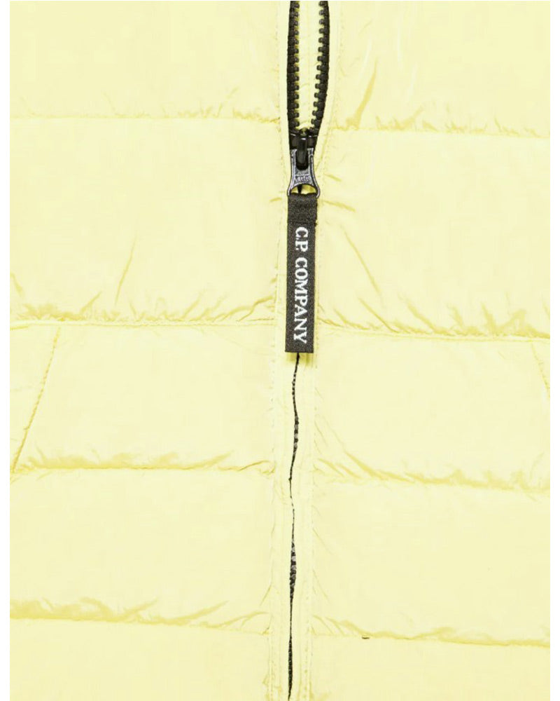 Piumino imbottito da bambino realizzato in nylon. Presenta design trapuntato, cappuccio fisso, maniche lunghe con polsi elasticizzati, chiusura frontale con zip, due tasche laterali e orlo con coulisse regolabile. È decorato con lente C.P. Company applicata sulla manica.