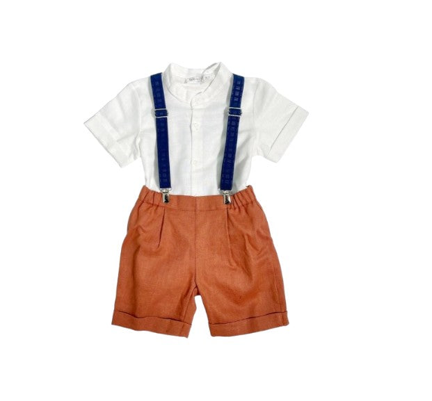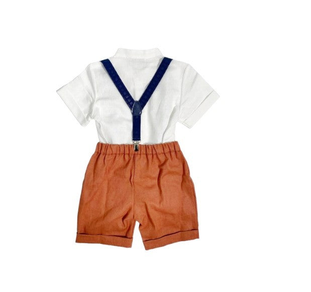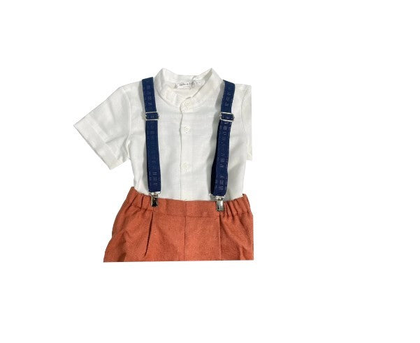 completo camicia a body collo coreana pantalone con bretelle elastiche