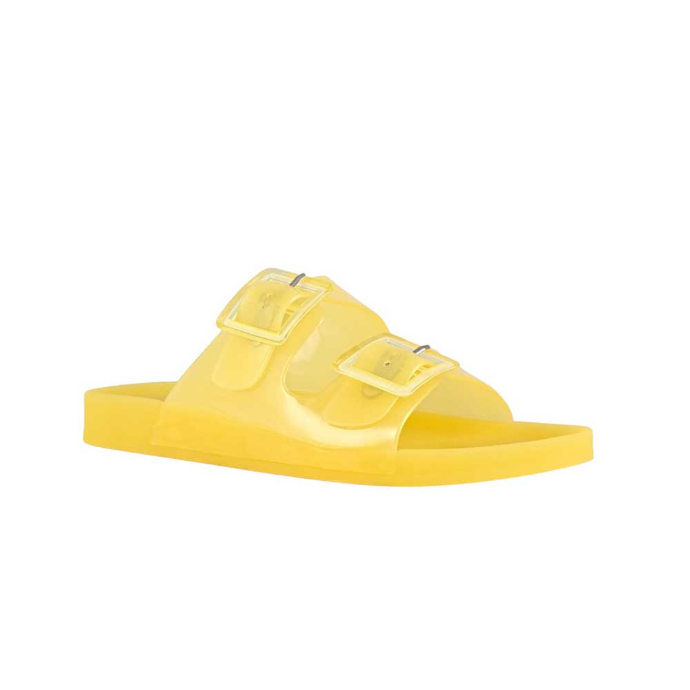Sandalo jelly con fibbie. Le eighties lovers impazziranno per questa versione super pop del sandalo con doppia fascia monocolore. Un pezzo evergreen dell'estate, super trendy con le fibbie ton sur ton. Da indossare con jeans a vita alta e t-shirt a righe o con abiti over e accessori bling bling, chi le proverà avrà la sensazione di avere due golosossime caramelle ai piedi.