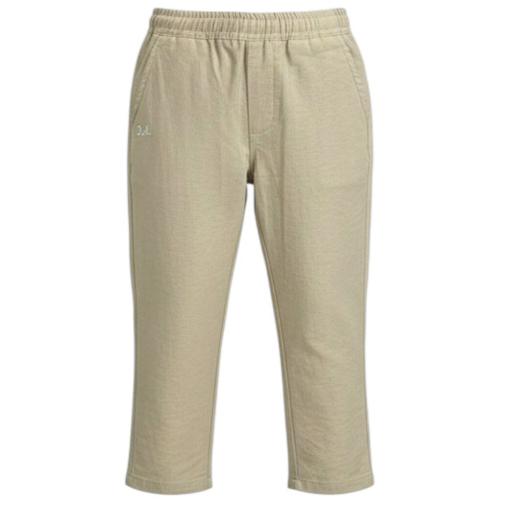 Pantaloni realizzati in leggero tessuto di misto viscosa, caratterizzati da vita elasticizzata con coulisse interna, due tasche laterali all'americana e logo ricamato a contrasto sul davanti.