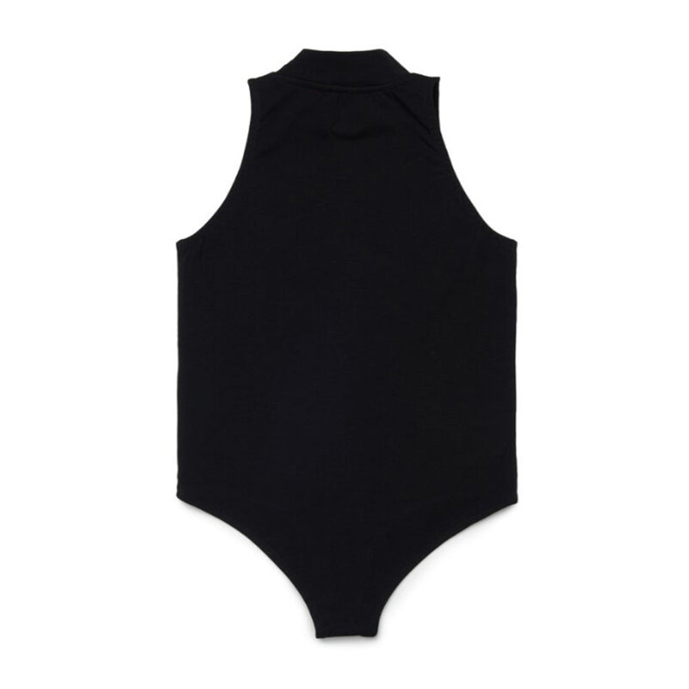 Body realizzato in jersey di cotone elasticizzato, caratterizzato da colletto tondo, giromanica, chiusura con bottoncini a pressione. È decorato con logo Oval D ricamato sul petto.