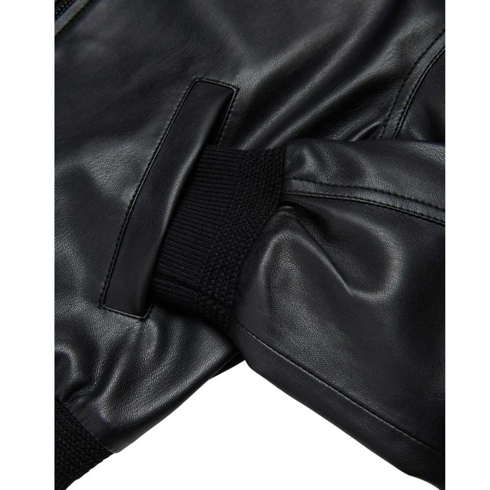 Giubbino realizzato in similpelle, caratterizzato da chiusura frontale con zip, maniche lunghe, due tasche laterali all'americana e finiture a costine. È decorato con logo Oval D in rilievo sul petto.
