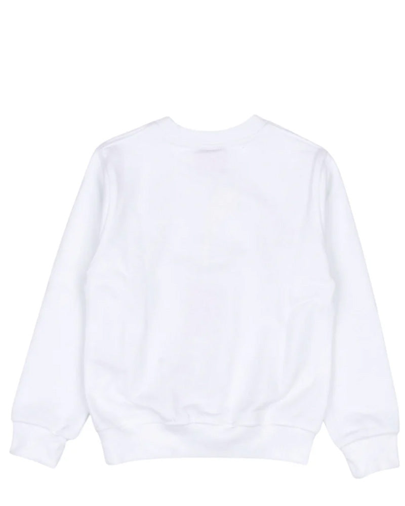 Felpa realizzata in cotone girocollo, maniche lunghe, collo polsi e orlo in costa, stampa in contrasto sul davanti.