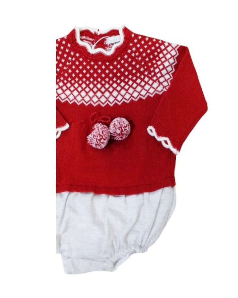 pagliaccetto corpetto in lana senza collo pon pon sul davanti il sotto in stoffa di colore a contrasto