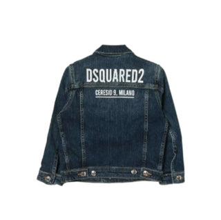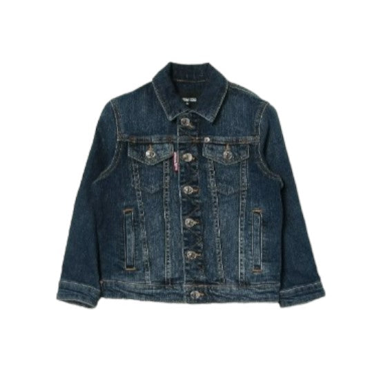 Giubbino in denim, chiusura frontale con bottoni, tasche applicate sul petto, logo stampato sul retro.