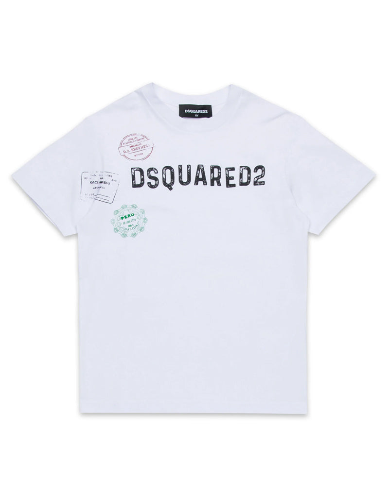 T-shirt girocollo a maniche corte in jersey. Vestibilità relax, regolare. Logo Dsquared2 con grafica Passport sul davanti a contrasto colore.