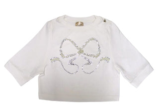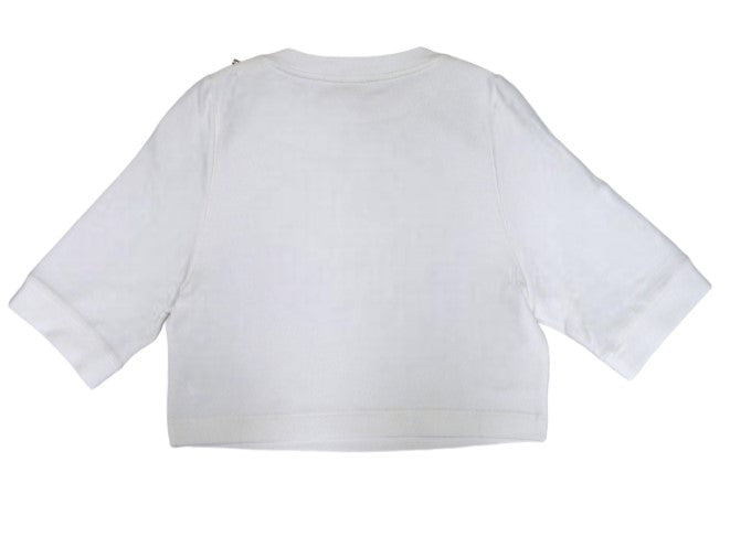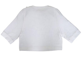 Felpa girocollo crop, manica tre quarti, applicazione sul davanti.