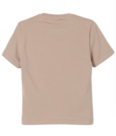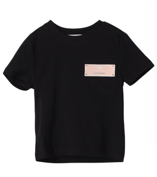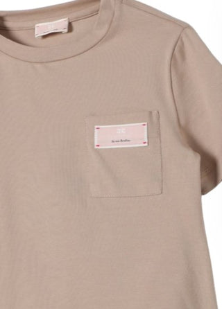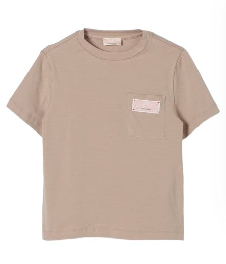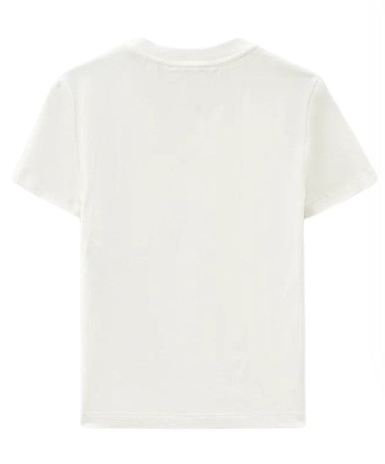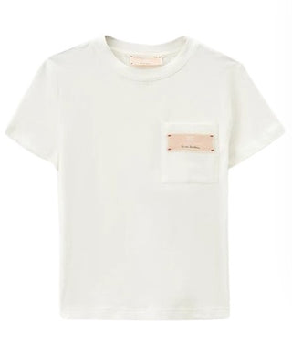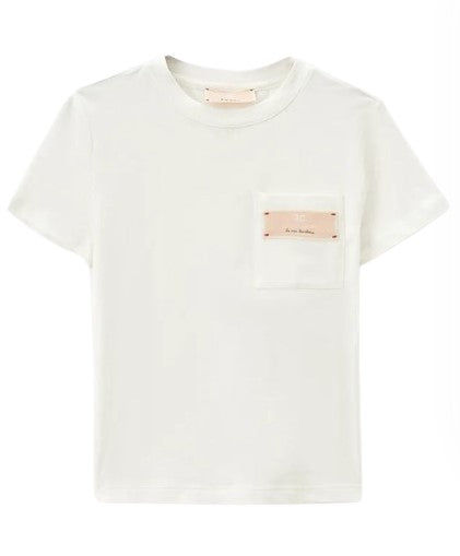 T-shirt girocollo, manica corta, orlo dritto, taschino e patch logato applicato.