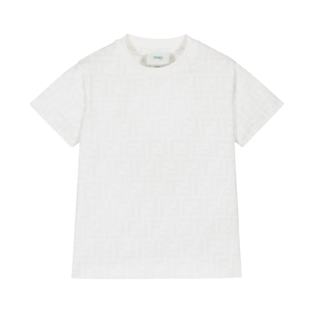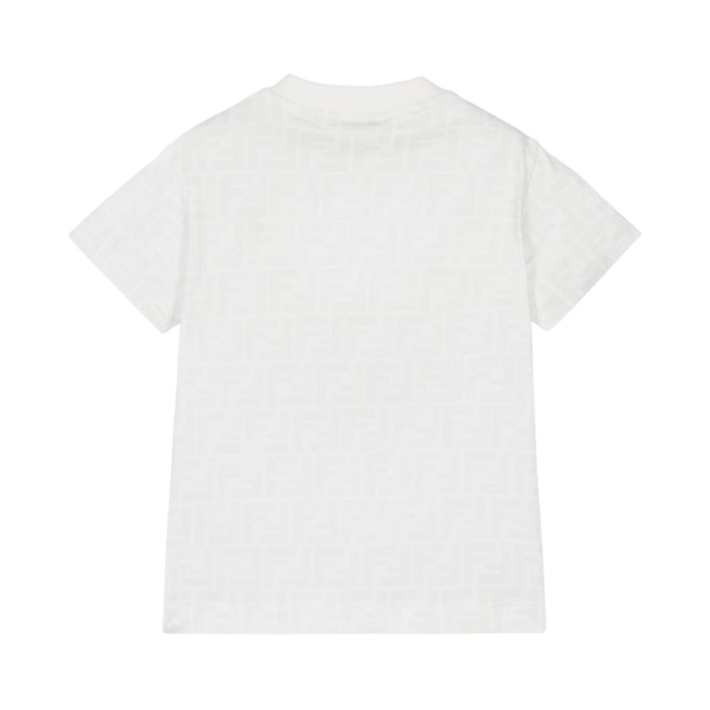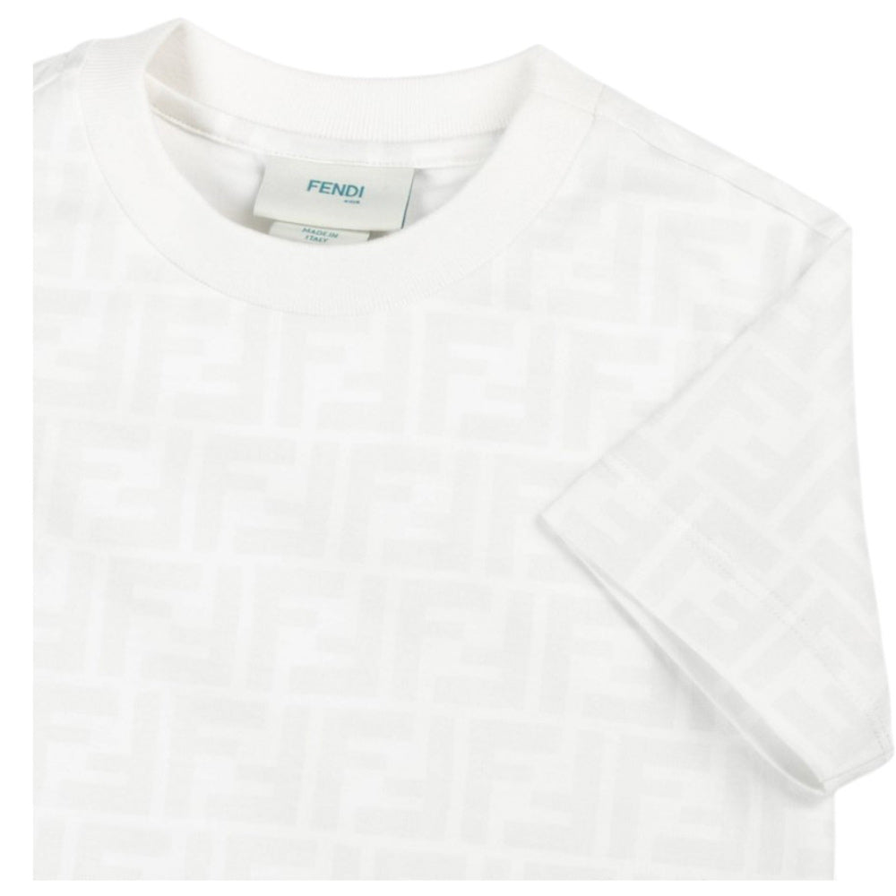 T-shirt realizzata in jersey di cotone, caratterizzata da collo rotondo a costine, maniche corte e orlo dritto. È decorata con stampa logo FF all-over tone on tone.