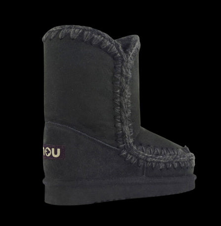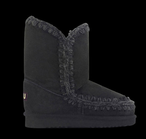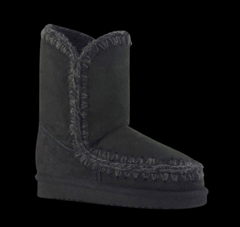 Eskimo Boot Mou. Modello in splendido e caldo montone double-face, con cuciture in lana lavorate all'uncinetto, tallone rinforzato e una resistente suola esterna in EVA e gomma.
