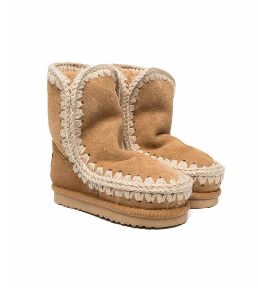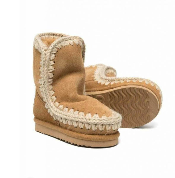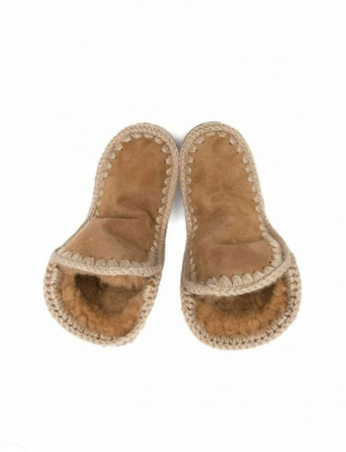 Eskimo Boot Mou. Modello in splendido e caldo montone double-face, con cuciture in lana lavorate all'uncinetto, tallone rinforzato e una resistente suola esterna in EVA e gomma.