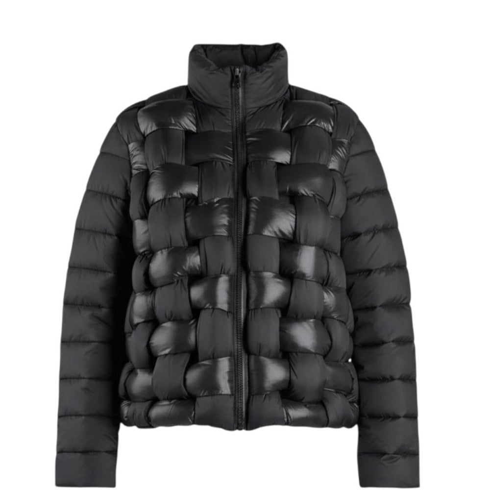 Giubbino imbottito da donna Floriane, realizzato in nylon. Presenta design macro intrecciato, collo alto, maniche lunghe, chiusura frontale con zip, due tasche laterali con zip e orlo dritto.