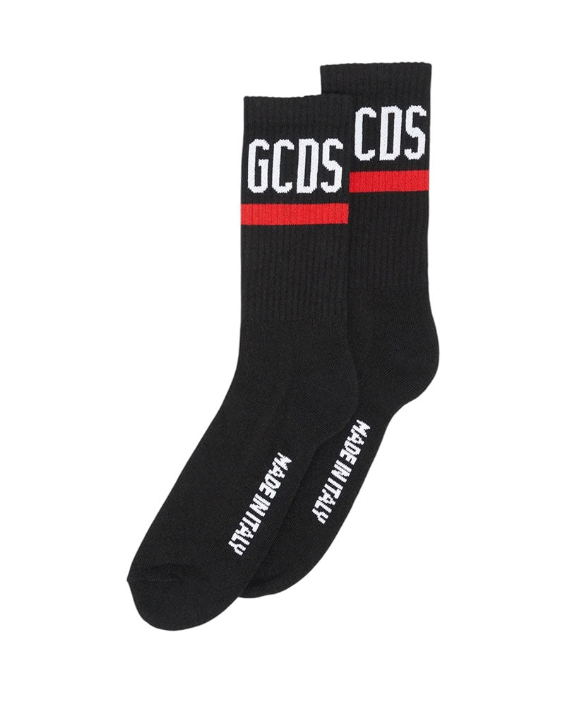 Calzettoni in misto cotone con logo GCDS intarsiato e motivo lineare a contrasto.