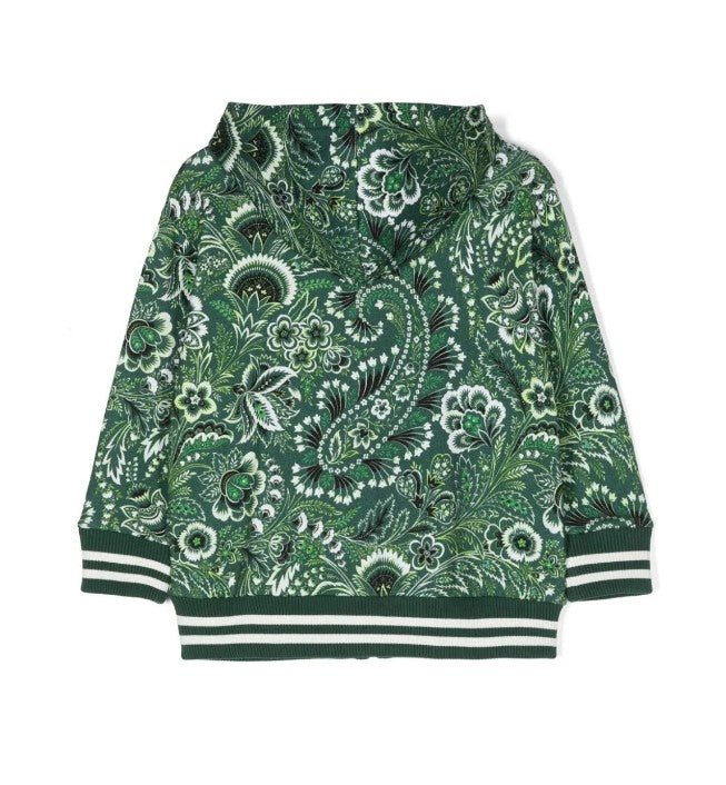 Felpa con zip e cappuccio realizzata in cotone, stampa paisley, finiture in costa.