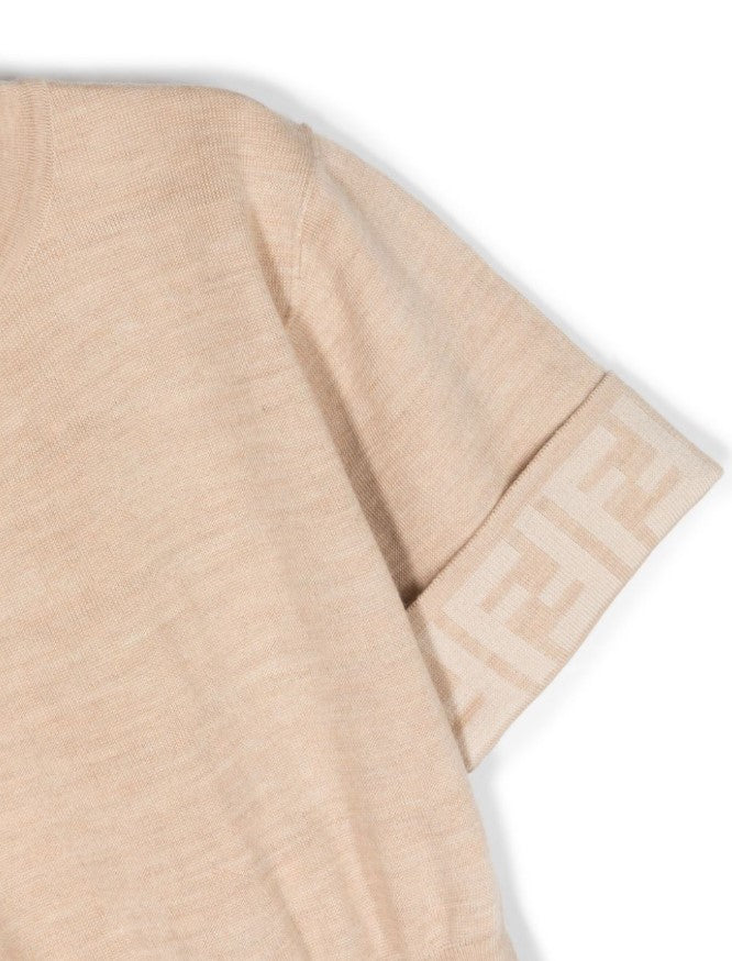 Abito girocollo in felpa di cotone a manica corta con risvolto logato e vita elasticizzata.